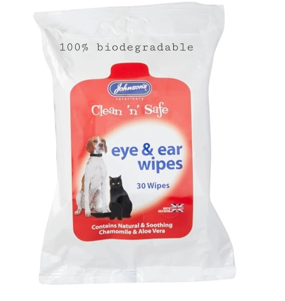 Gently removes ‘rheum’ or eye mucus from cats and dogs peepers, also gentle for inside ear cleansing – 100% biodegradable – Made in the UK. Note: Make sure the sticky top is on firmly when not in use to avoid wipes drying out.